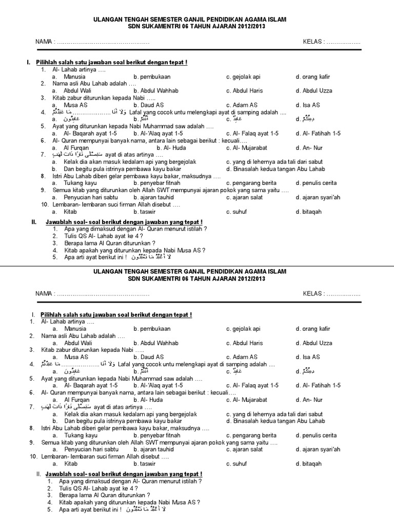 Soal ini terdiri dari soal pilihan ganda dan soal essay beserta dengan kunci jawabannya. Nah, itulah contoh naskah soal pts pai bp kls 2 semester 2 k13 yang cukup kopikan pada doc.word dan edit sesuai keperluan anda, dan soal tersebut berisikan 3 bagian, pilihan ganda, jawaban singkat dan uraian atau essay yang mana untuk tikat 2 kita anggap sudah layak dan. Mid semester / ulangan semester 1 pai kelas 7. Website berisi latihan soal tematik kurikulum 2013, soal tema, soal subtema, soal ktsp, soal uas dan uts, soal pas dan pts, download latihan soal serta latihan soal online. Soal uts pai kelas 7 k.13 tp.